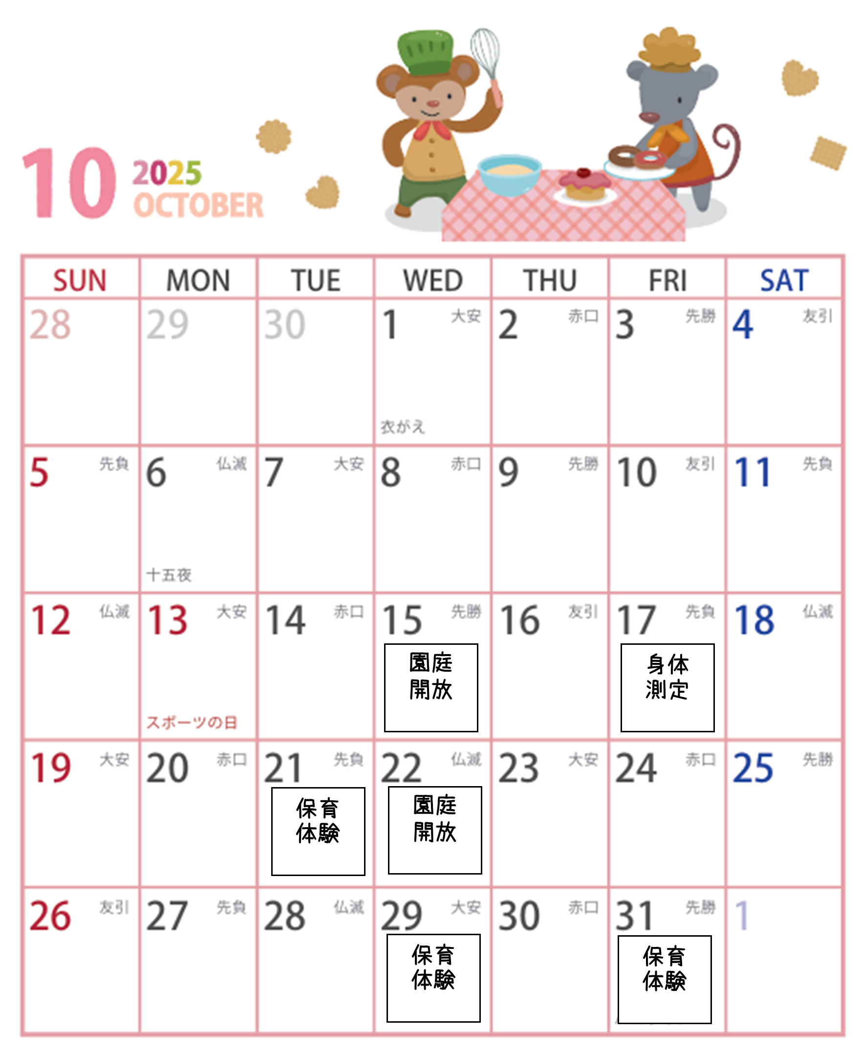 こんにちは!子育て支援10月の予定です。