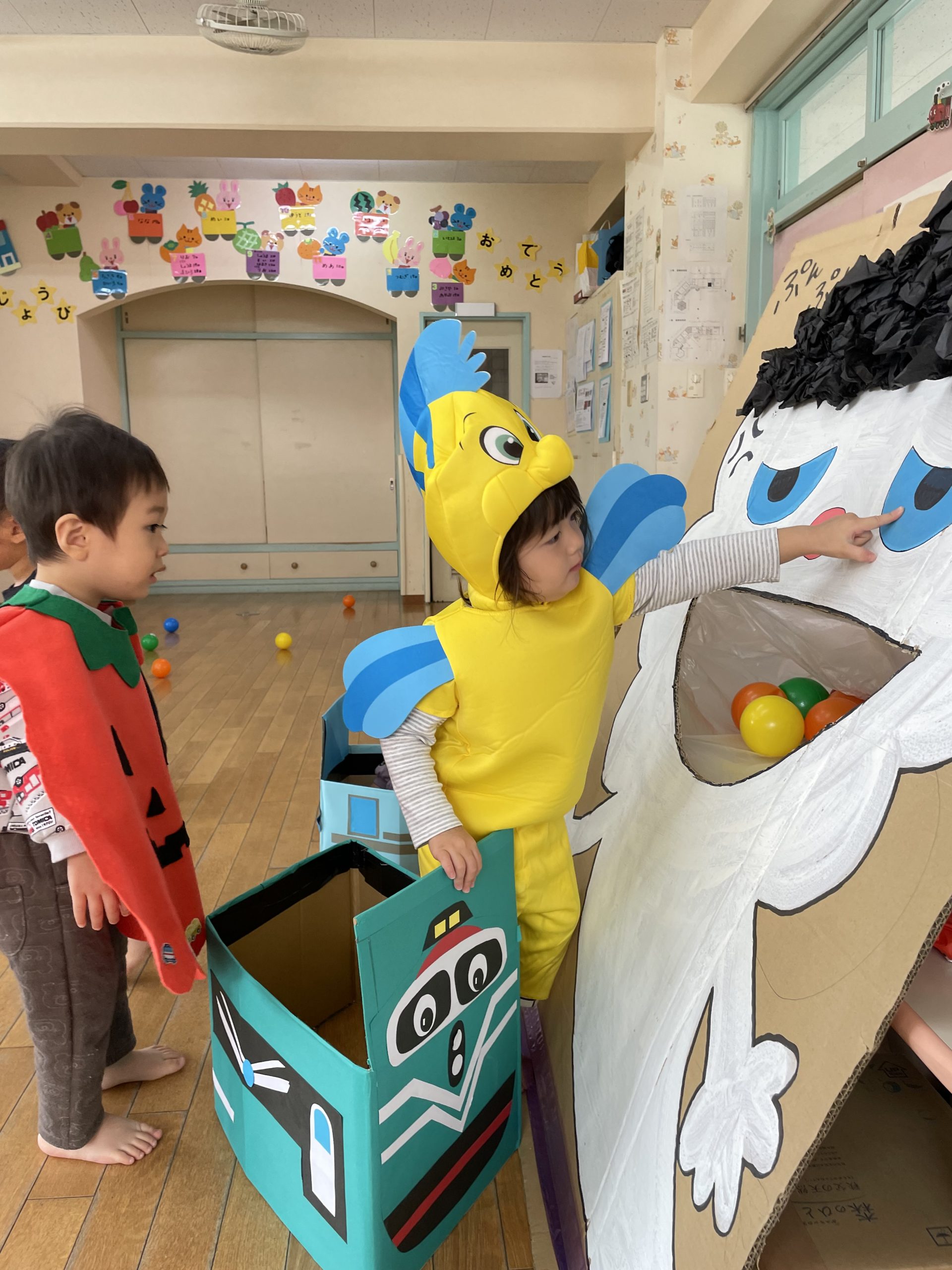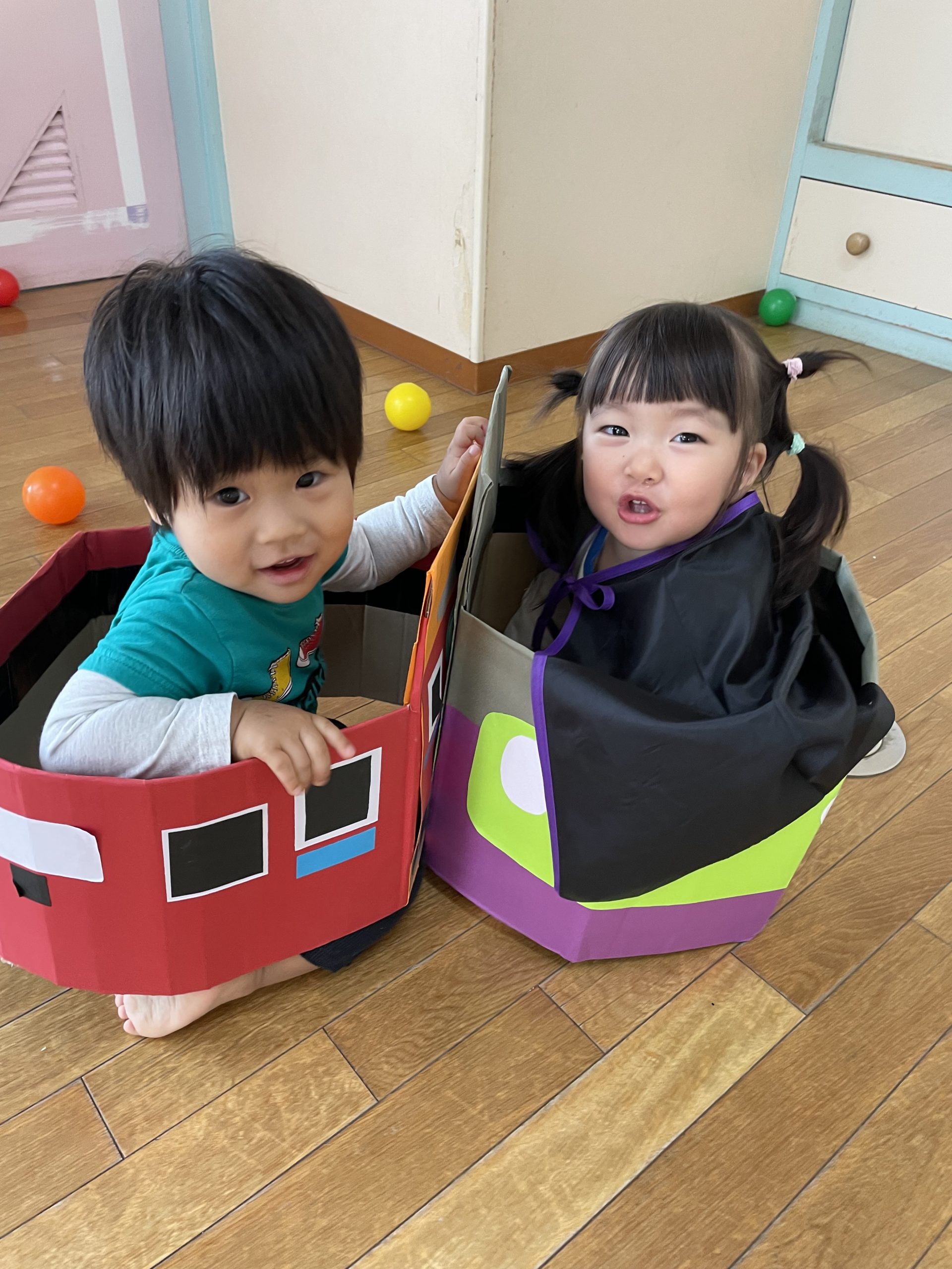 電車遊びと玉入れ遊びをしました😊